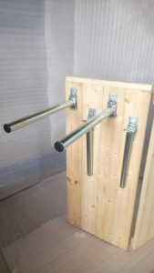 Diese Sattelhalter werden an einer Trägerplatte eingehängt. Zum auflegen eines Sattels einfach in der Postion (siehe linkes Bild) an der Trägerplatte einhängen – fertig.